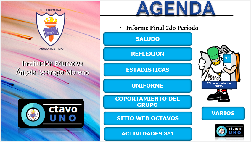 El siguiente archivo contiene La AGENDA con la información del informe final del segundo periodo del Grupo 8°1 2025 de la I.E. Ángela Restrepo Moreno.